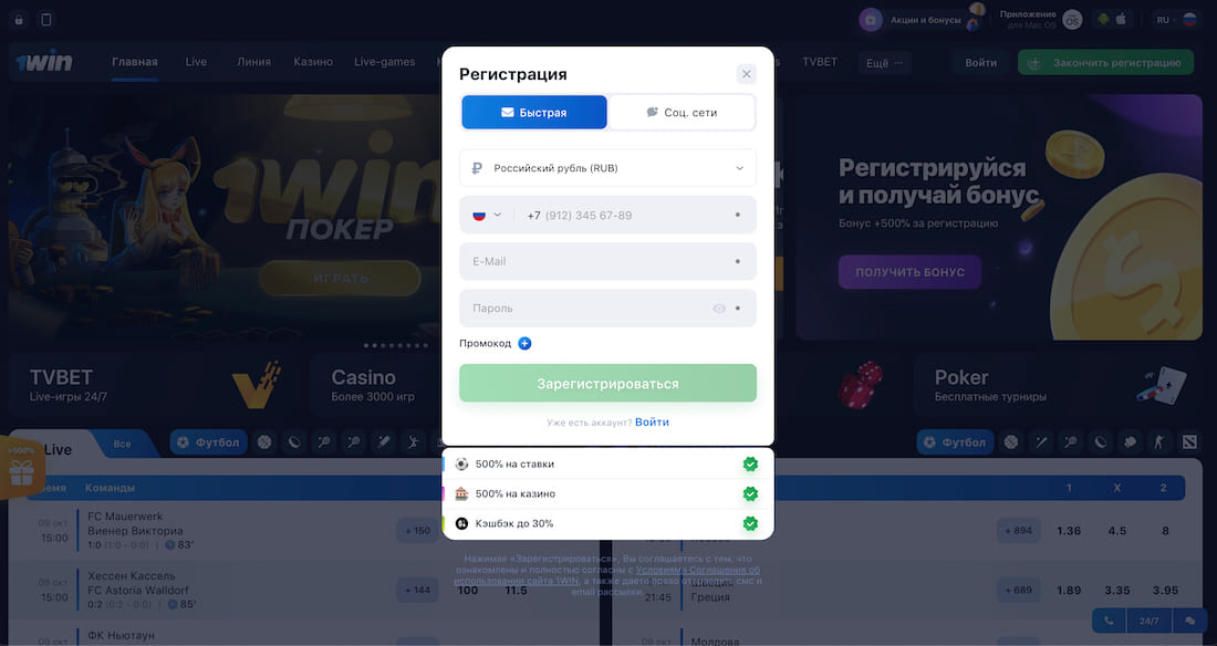 На платформе объединены букмекерская контора и казино. Регистрация на официальном сайте предоставляет доступ как к ставкам на спорт, так и к игре на деньги в игровых автоматах.