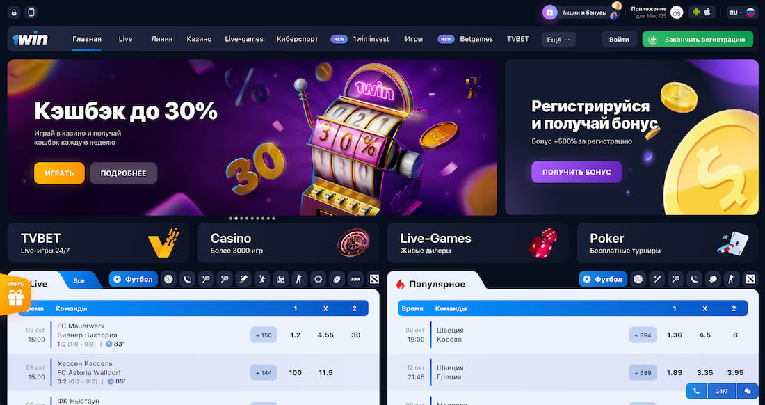 Каталог развлечений в 1вин казино насчитывает более 12 500 игр, что впечатлит даже самых требовательных игроков. В ассортименте представлены: