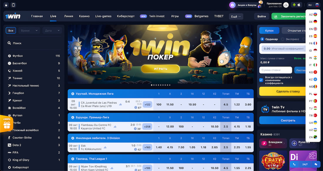 1 вин — международный оператор, работающий с 2016 года и имеющий лицензию от правительства Кюрасао. Официальный сайт компании переведен на более чем 20 языков, включая английский, русский, испанский, португальский, хинди и бенгальский, что делает его доступным для пользователей по всему миру.